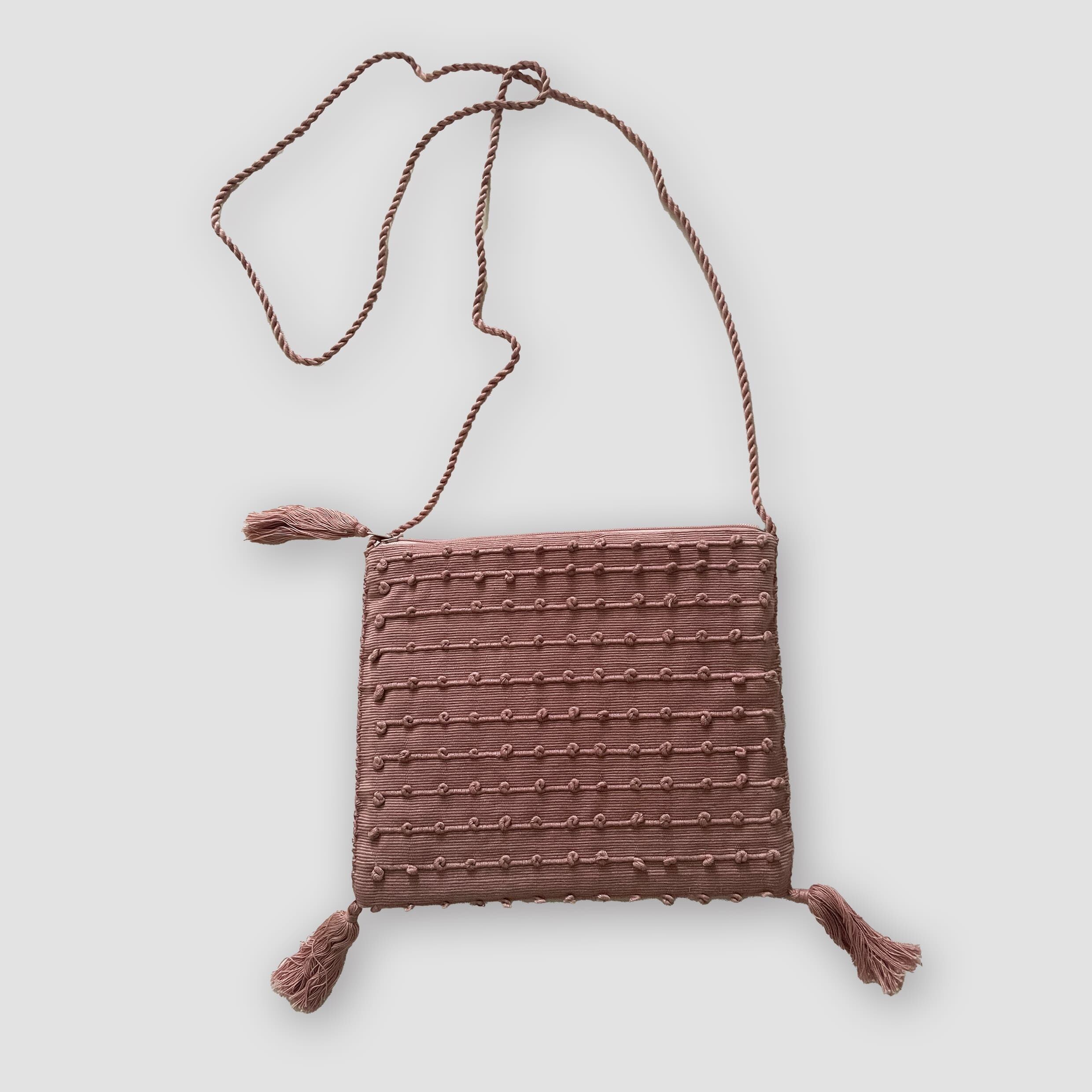 手作りのポシェット(ピンク)は、シンプルで素朴なデザインでカジュアルに活用できます。